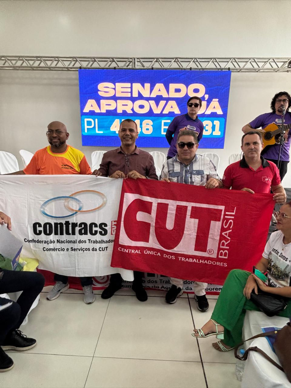 Tião Santos, diretor do SINPUC e presidente da CUT cobrou dos senadores a indicação da fonte de recurso para avançar os projetos no Congresso: "se o problema é indicar fonte de recurso, que os parlamentares sentem e indiquem, porque quando é para beneficiar eles, eles encontram fonte de recurso e votam pela madrugada", afirmou Tião.
